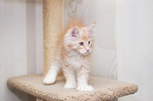 Turkish Vankedisi are athletic and adventurous cats, so you can certainly expect kittens to have a lot of energy. They’re known to be very playful, curious, and eager to explore the world around them. Therefore, it’s extremely important to kitten-proof your home before your Turkish Vankedisi kitten arrives. Make sure cabinets and drawers are locked or shut securely, and remove any potentially harmful objects from your countertops and tables. It’s also helpful to install a tall cat tree and some perches in your home so that your kitten can climb them rather than trying to scale your curtains and scratching up your own furniture.